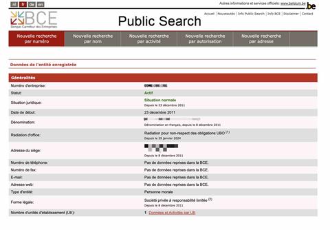 Au total, 20 795 entités ont été radiées de la Banque-Carrefour des Entreprises parce qu'elles n'avaient pas enregistré leurs bénéficiaires effectifs ou qu'elles n'avaient pas publié d'annonces au Moniteur belge pendant sept ans. Cette radiation vise à les encourager à se conformer aux lois anti-blanchiment et à identifier les entités inactives. Ces radiations sont visibles pour tous les services publics ou citoyens consultent la BCE via son site web. Dans une deuxième phase à venir, plus de 8 000 autres entités seront également radiées.